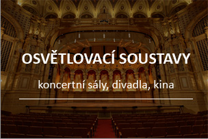 Specializované osvětlovací soustavy pro koncertní sály, divadla, kina, projekční a testovací prostory.
